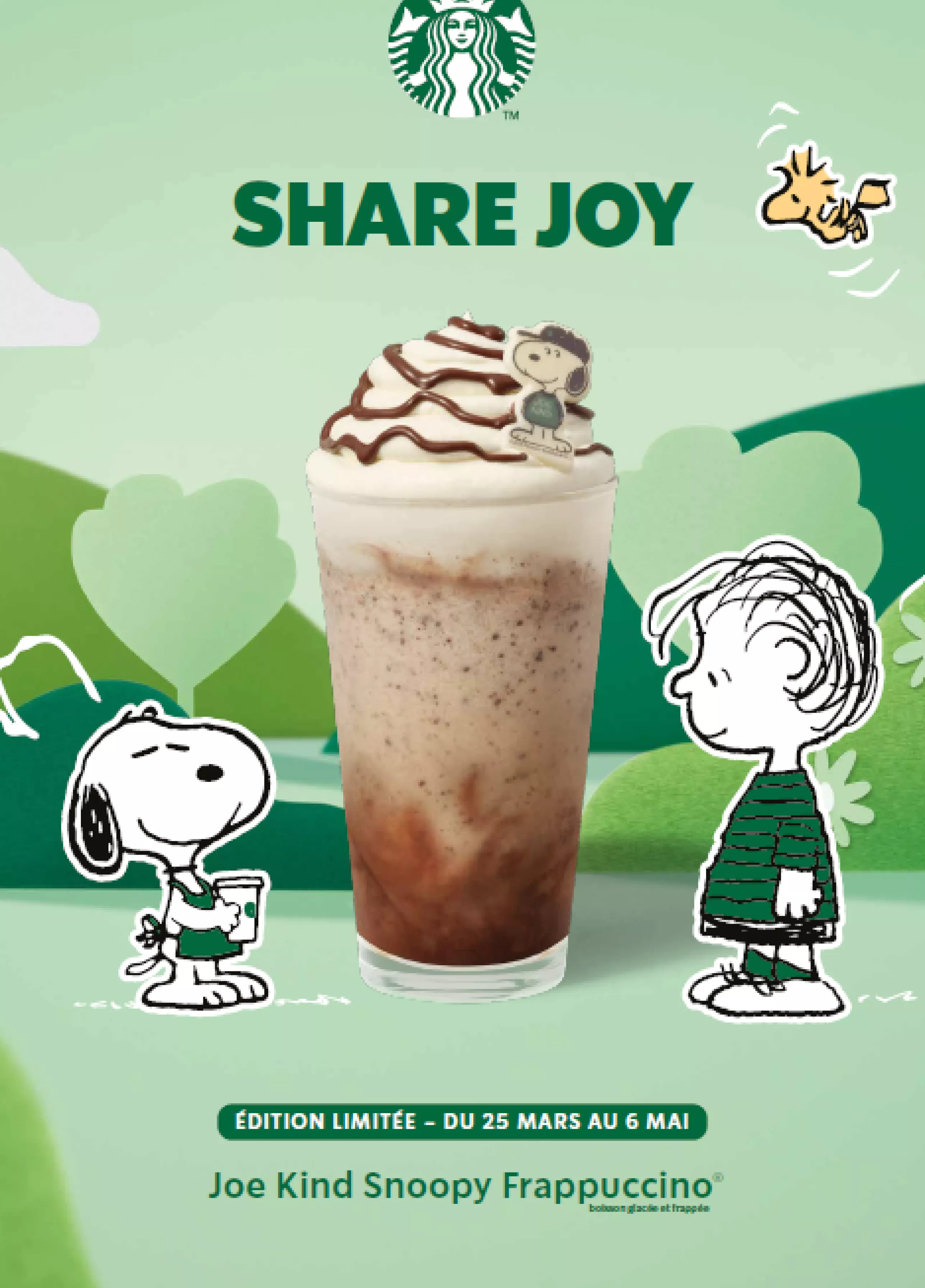 Offre valable jusqu'au 30 avril 2025, pour l'achat d'un Lavender Latte, Iced Lavender Latte, Lavender Frappuccino, Iced Lavender Matcha Latte en Grande ou en Venti ou d'un Joe Kind Snoopy Frappuccino, recevez un gobelet réutilisable gratuitement. Offre strictement réservée aux membres Starbucks Rewards Gold. Offre valable 1 fois par client. Suggestion de présentation. Dans la limite des stocks disponibles.